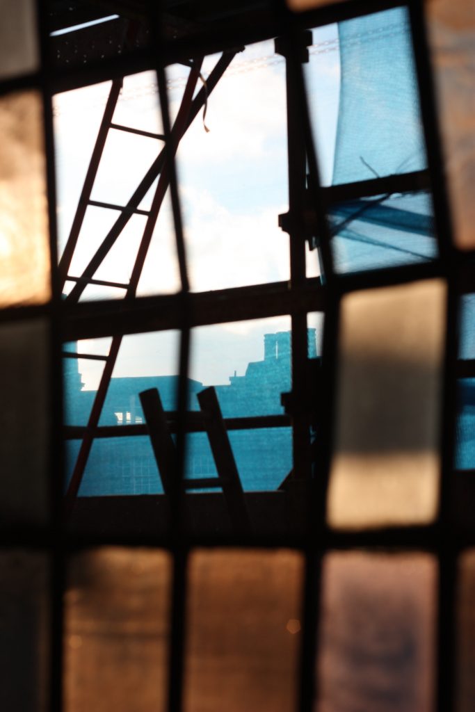 The windows have been boarded up entirely since the early ’90s, the whole building is being renovated and there is still a further 2 stages to go on that so I don’t think they will be seen by the public for maybe a year or two.