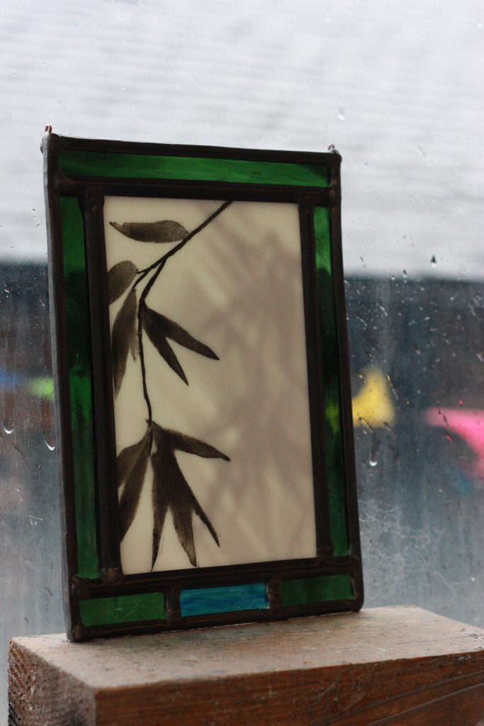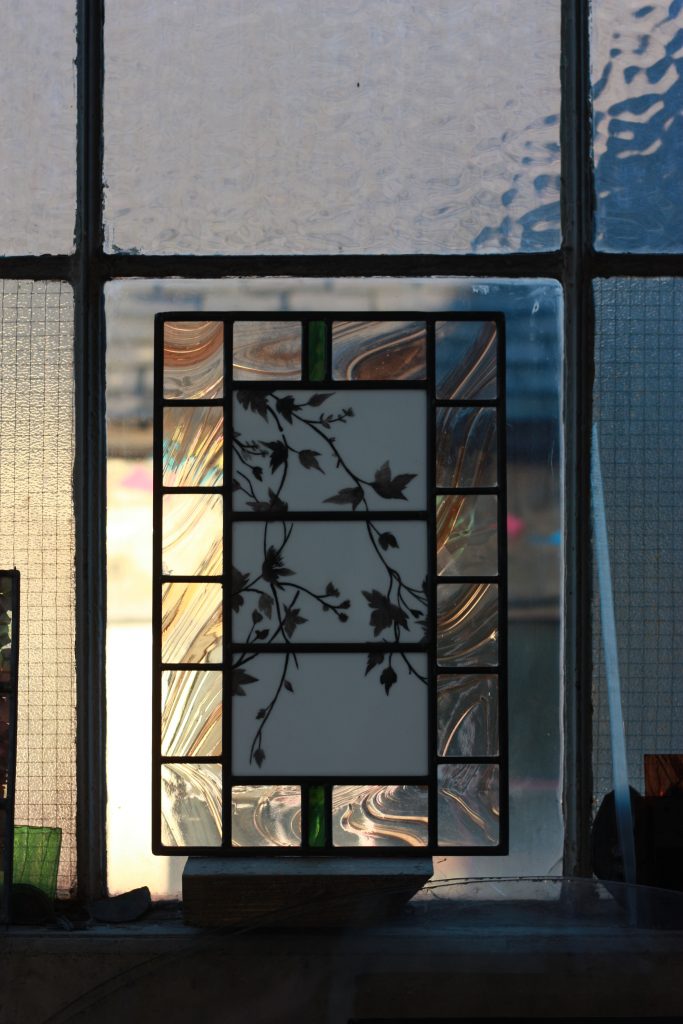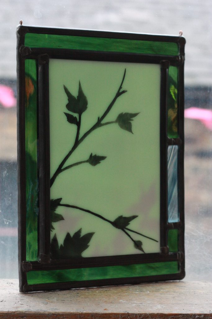 And a second 3 panel design, this one I tried a different painting technique, and used cinnamon baroque glass to border it.