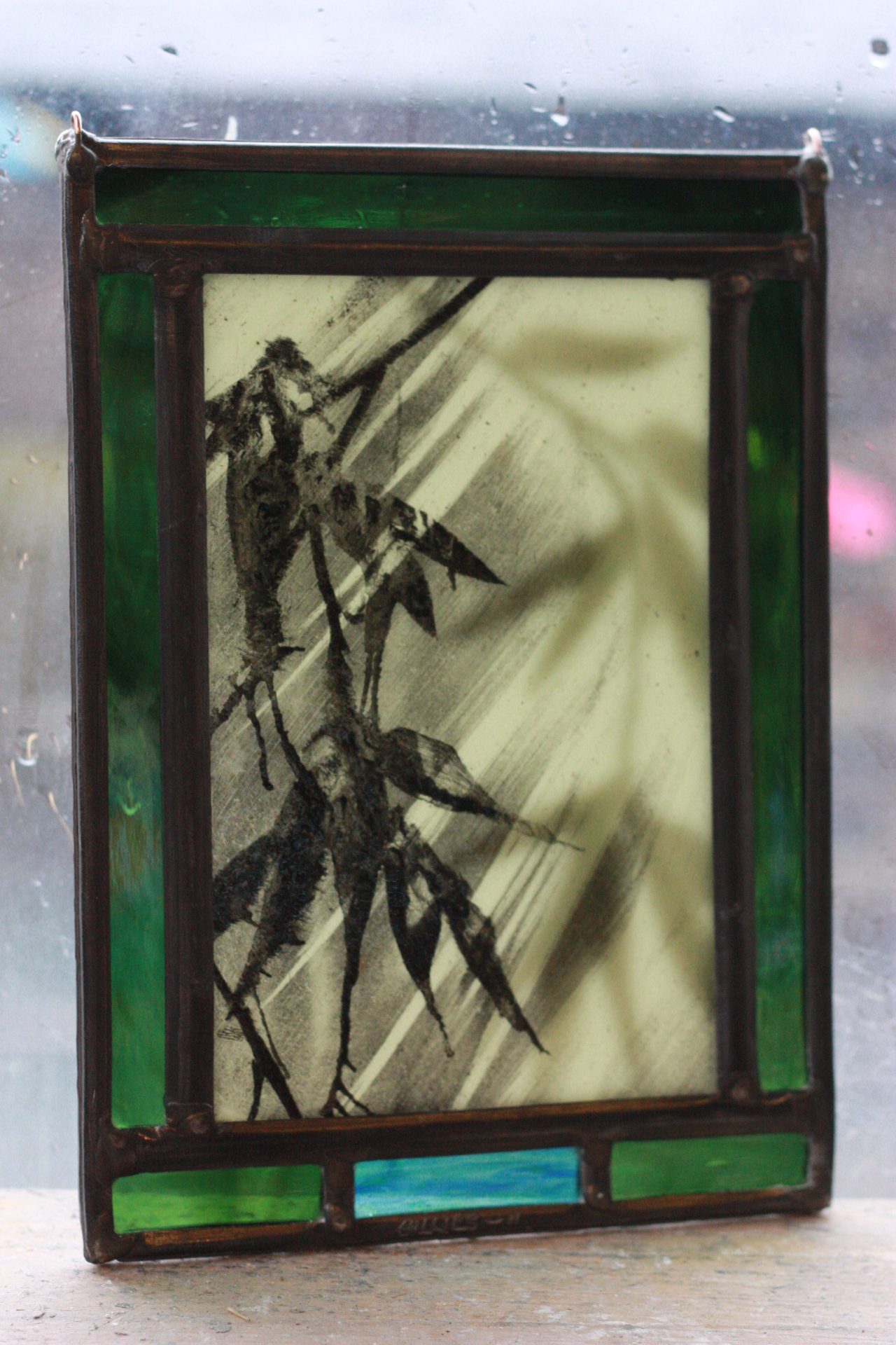 And a second 3 panel design, this one I tried a different painting technique, and used cinnamon baroque glass to border it.